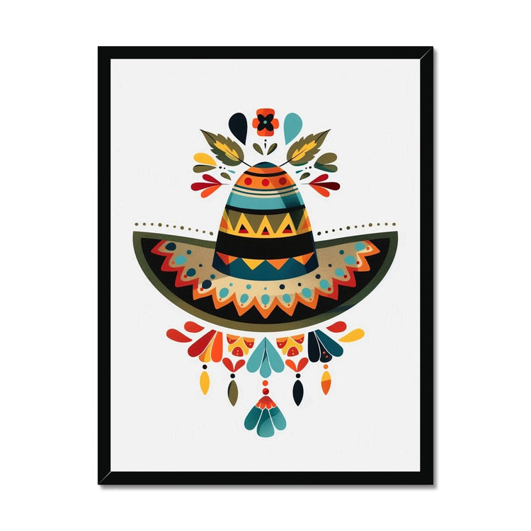 Bringen Sie mit Folk Art Sombrero Bloom einen Hauch von Farbe und Kultur in Ihre Räume – ein lebendiger, stilisierter Druck, inspiriert von traditionellem mexikanischem Folk-Design. Mit einem reich gemusterten Sombrero, umgeben von verspielten Blumenformen, strahlt dieses Kunstwerk Wärme, Freude und Festlichkeit aus.