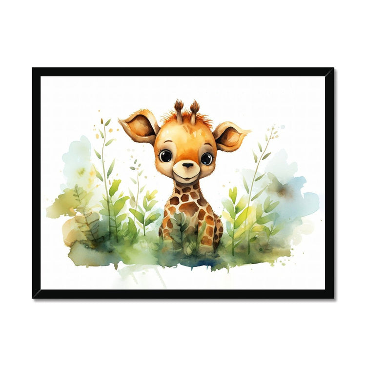 Verleihen Sie dem Zimmer Ihres Kindes eine skurrile Note mit unserem Posterdruck „Jungle Baby Animals“ mit einem Aquarell-Giraffebaby.