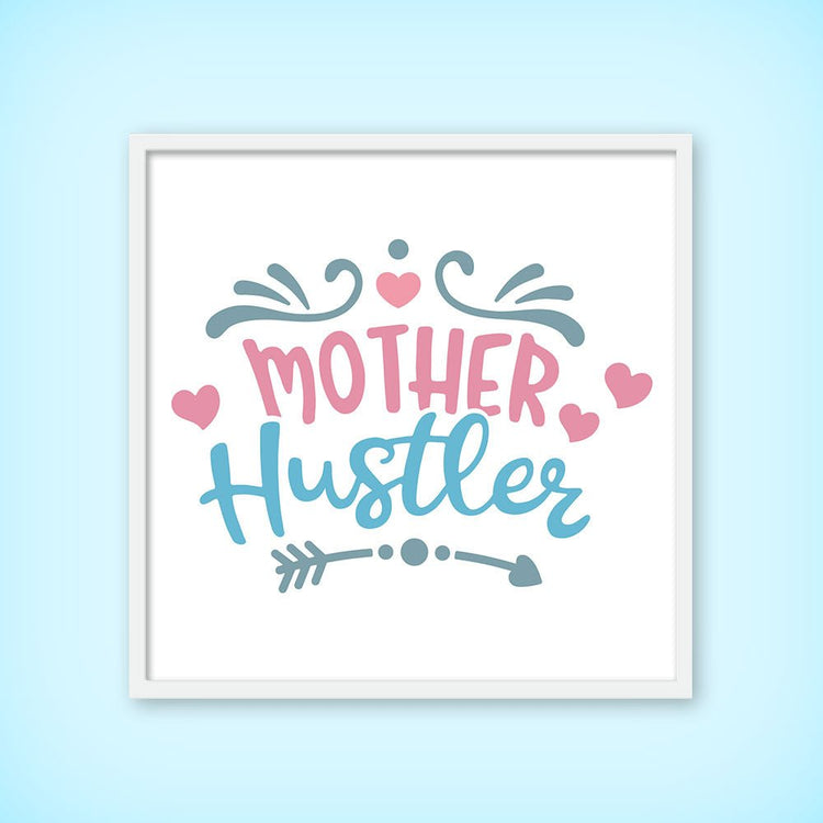 Dieser verspielte Typografie-Druck „Mother Hustler“ zelebriert den fleißigen, multitaskingfähigen Geist der modernen Mutterschaft. Mit zartrosa und blauer Schrift, verziert mit Herzen und Schnörkeln, verbindet das Design Humor und Stil zu einem unbeschwerten Wandbild.