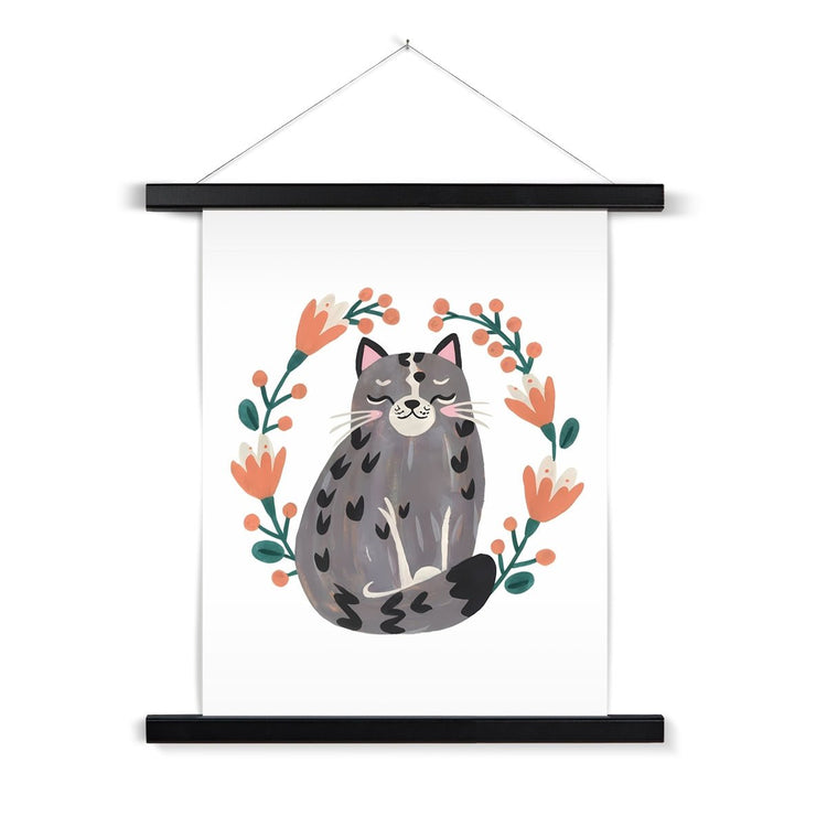 Purrfect Whiskers 03 fängt den bezaubernden Charme eines Katzenfreundes ein, umgeben von leuchtenden Blumen.