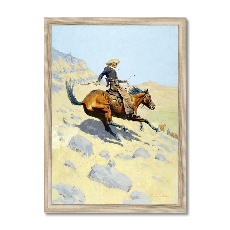Erleben Sie den Geist des Wilden Westens mit diesem atemberaubenden Gemälde: „Der Cowboy, 1902“. Dieses fesselnde Kunstwerk zeigt einen einsamen Cowboy, der durch die weite Wüste reitet und die raue Unabhängigkeit und den Abenteuergeist dieser Ära verkörpert.