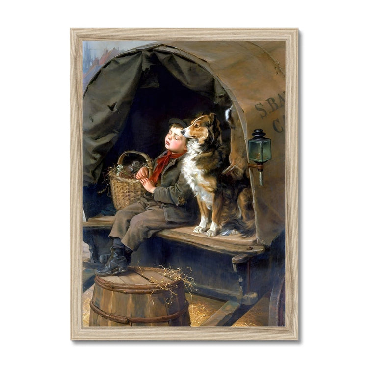 Diese Szene zeigt einen müden Jungen, der am Ende eines langen Markttages in einem Planwagen schläft, bewacht von einem treuen Hund. Die Komposition fängt Wärme, Erschöpfung und stille Verbundenheit ein – Kennzeichen von Hedleys einfühlsamem Erzählstil.