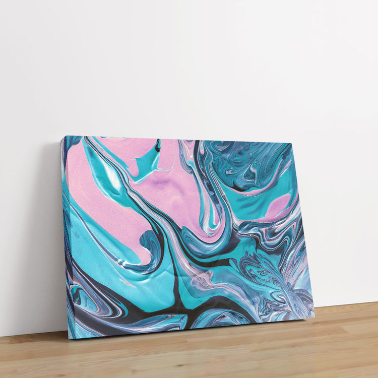 Take your art to the next level with this canvas print. Featuring an abstract blend of teal, blue, and pink, this print is sure to add a pop of color to any room. Printed on high-quality canvas, this print is sure to make a statement in any space.