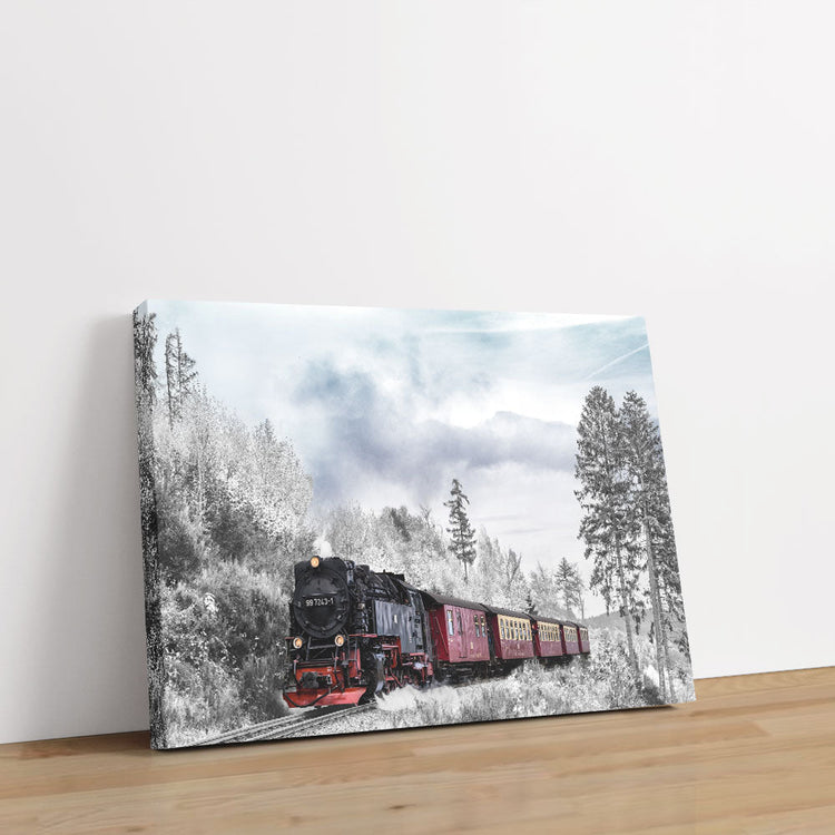 Printed on high-quality canvas, this luxurious scene exudes a sense of grandeur and refinement. Delight in the glorious winter light as you explore your journey on the timeless rails.