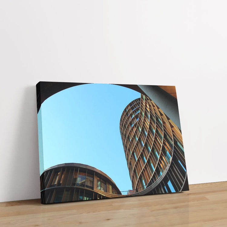 Add a touch of art to your walls. Looking for a unique and stylish way to add some flair to your walls? Our Round Resolute canvas print is the perfect way to achieve that. With its beautiful curves and intricate architecture, this building facade is a true work of art. Let it bring some style to your home.